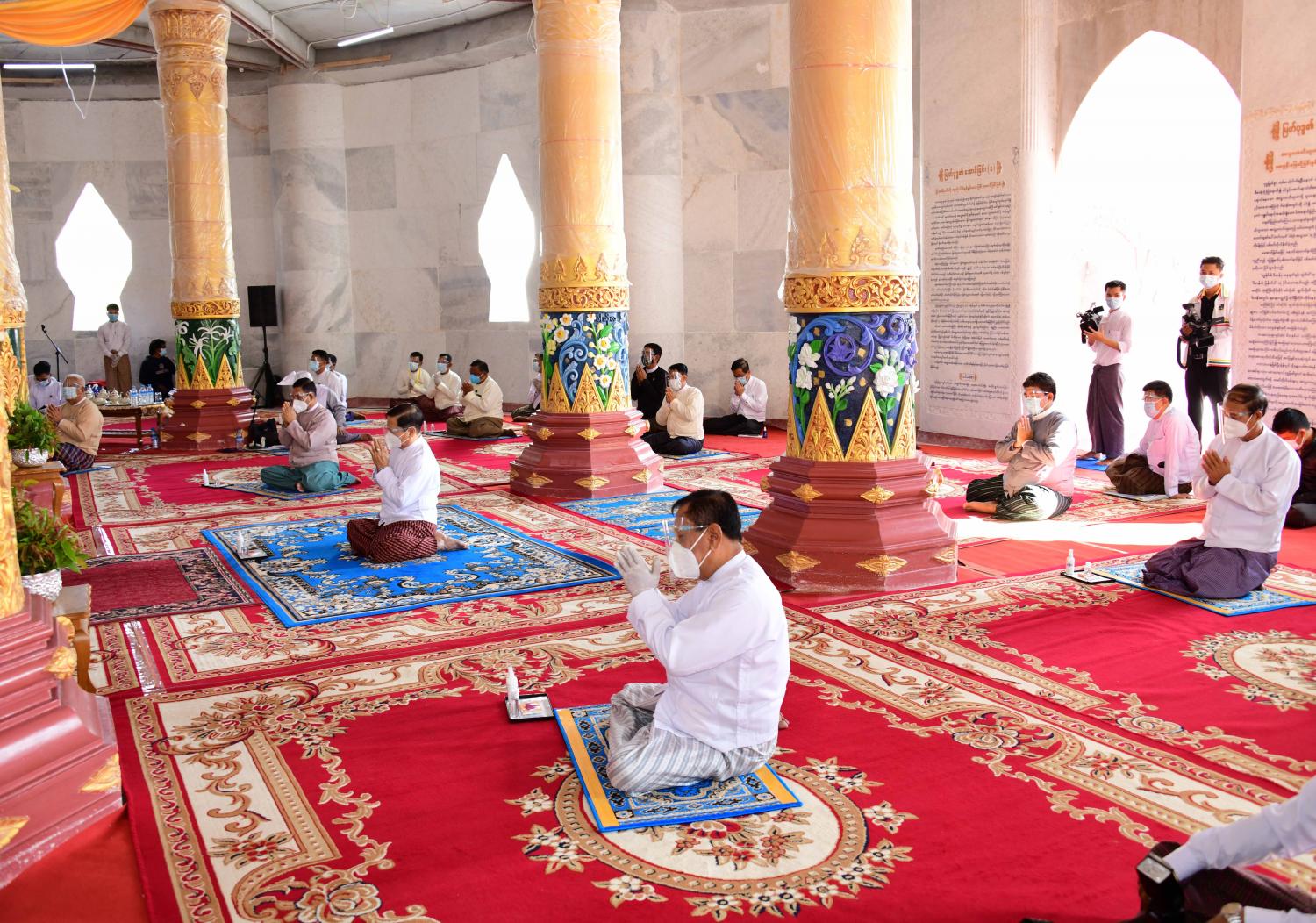 အခမ်းအနား မစတင်မီတွင် ပြည်ထောင်စုဝန်ကြီး သူရဦးအောင်ကို၊ နေပြည်တော် ကောင်စီ ခေတ္တဥက္ကဋ္ဌ ဦးအောင်မြင်ထွန်းနှင့် ဒုတိယဝန်ကြီး ဦးကြည်မင်းတို့က ထာဝရငြိမ်းချမ်းရေး စေတီတော် လိုဏ်အတွင်းရှိ ဗုဒ္ဓရုပ်ပွားတော်မြတ်များအား မြသပိတ်ဆွမ်း၊ သစ်သီး၊ ပန်းမန်၊ ဆီမီးနှင့် သောက်တော်ရေချမ်းများ ဆက်ကပ်လှူဒါန်းကြသည်။