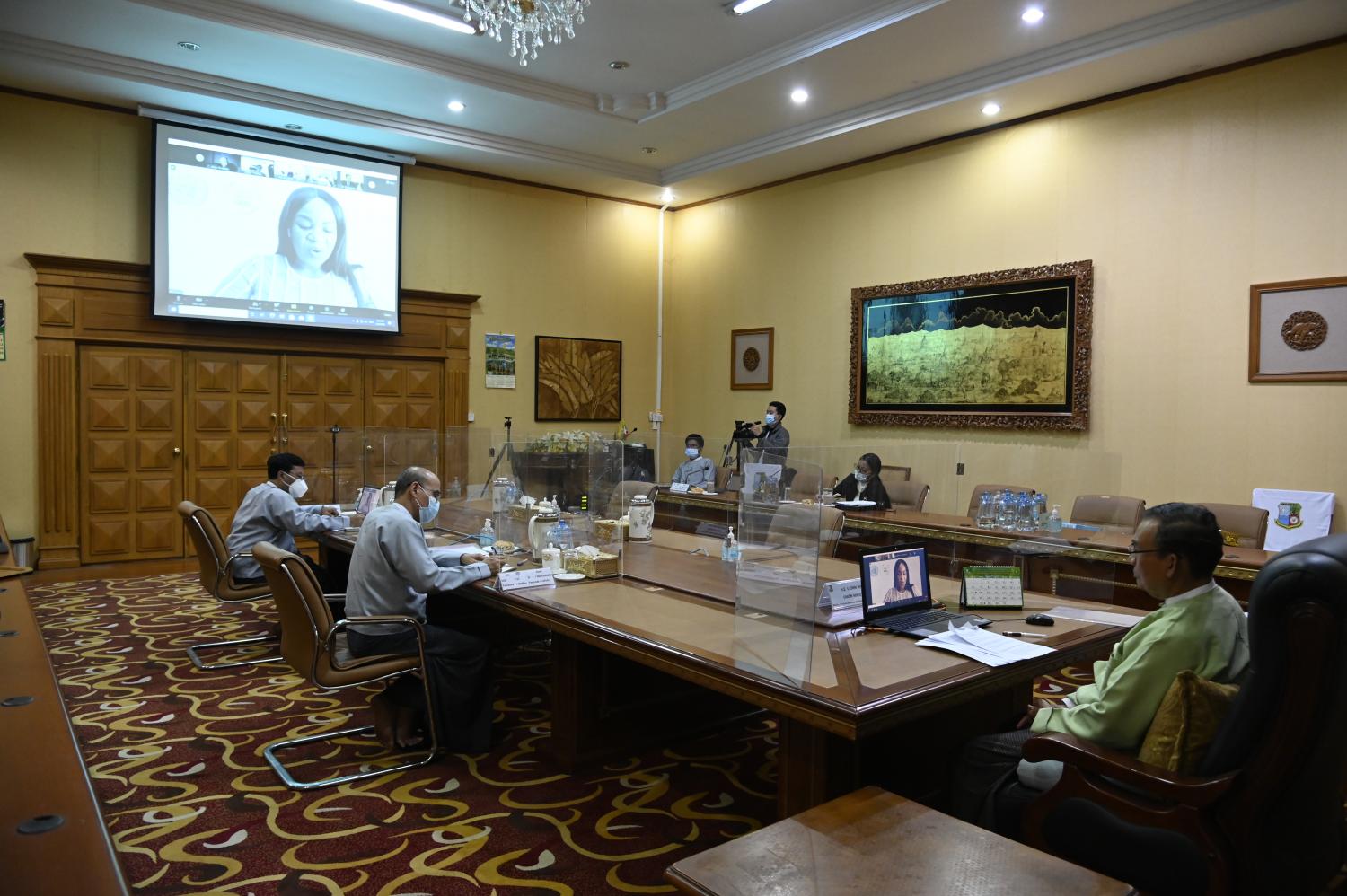 ၂၀၂၀ ပြည့်နှစ်တွင် နေရောင်ခြည် စွမ်းအင်သုံး လျှပ်စစ်ဓာတ် အားပေးစက်ရုံစီမံကိန်း (၂၉) ခုအား ပုဂ္ဂလိက ကဏ္ဍသို့ ခွင့်ပြုပေးခဲ့ပြီး အဆိုပါစီမံကိန်းများ အကောင်အထည်ဖော် ပြီးစီးပါက ပြန်လည်ပြည့်ဖြိုးမြဲ စွမ်းအင် သုံးစွဲမှုကဏ္ဍတွင် ၁၄ ရာခိုင်နှုန်း အထိ မြင့်တက်လာမည် ဖြစ်ကြောင်း၊ နိုင်ငံအနေဖြင့် ပြန်လည်ပြည့်ဖြိုးမြဲ လျှပ်စစ် စွမ်းအင် ထုတ် လုပ်ခြင်းနှင့် ဖြန့်ဖြူးခြင်း၊ လျှပ်စစ်ဓာတ်အားထုတ်လုပ်မှုနှင့် သုံးစွဲမှုတို့တွင် အလေ အလွင့်မဖြစ် စေရန် လိုအပ်သော စွမ်းဆောင်ရည်မြှင့်တင်ပေးခြင်းများအတွက် နည်းပညာနှင့် ရန်ပုံငွေ အထောက် အပံ့များ ယခုထက် ပိုမိုရရှိရန် ကြိုးစားရှာဖွေလျက်ရှိကြောင်း၊ စွမ်းအင်ကဏ္ဍ အသွင် ကူးပြောင်း ရေးကောင်စီ (Energy Transition Council) အနေဖြင့် မြန်မာနိုင်ငံ ရာသီဥတု ပြောင်းလဲမှု ဆိုင်ရာ မူဝါဒ၊ အစိမ်းရောင် စီးပွားရေး ဖွံ့ဖြိုးတိုးတက်ရေး မူဘောင် အပါအဝင် နိုင်ငံ စဉ်ဆက် မပြတ် ဖွံ့ဖြိုးတိုးတက်ရေးအတွက် ရေးဆွဲ ပြဌာန်း ထားသည့်အချက်များနှင့်အညီ အစိုးရ ကဏ္ဍ၊ ပုဂ္ဂလိကကဏ္ဍများသို့ နည်းပညာ၊ လုပ်ငန်းရန်ပုံငွေနှင့် ရင်းနှီး မြှုပ်နှံမှုများရရှိစေရေး ကူညီ ဆောင်ရွက်ပေးစေလိုပါကြောင်း၊ လက်ရှိနိုင်ငံ၏ မဟာဓာတ်အား လိုင်း စနစ်အတွင်း ပြန် လည်ပြည့်ဖြိုးမြဲစွမ်းအင် ထည့်သွင်း ဖြန့်ဖြူးနိုင်ရန်အတွက် လိုအပ်သည့် ဓာတ်အားစနစ်၊ ဓာတ် အားကွန်ယက် အဆင့်မြှင့်တင်မှုများ၊ ဘူမိအပူစွမ်းအင် အပါအဝင် စွမ်းအင်အသစ်များ စူးစမ်း လေ့လာမှုများ ဆောင်ရွက်ခြင်း၊ ကျေးလက်ဒေသနှင့် ဝေးလံခေါင်ဖျားဒေသများသို့ လျှပ်စစ် ဓာတ်အား ဖြန့်ဖြူးနိုင်ရေးနှင့် စပ်လျဉ်း၍ ကမ်းရိုးတန်းဒေသများအတွက် ပင်လယ်ဒီရေလှိုင်းမှ လျှပ်စစ်ဓာတ်အား ထုတ်လုပ်ခြင်း၊ တောင်ပေါ် ဒေသများအတွက် ရေအားလျှပ်စစ် ဓာတ်အား ထုတ်လုပ်ခြင်းနှင့် ဆန်စပါးစိုက်ပျိုးထုတ်လုပ်သည့် ဒေသများ အတွက် စပါးခွံဇီဝဒြပ်ထု လောင် စာမှ လျှပ်စစ်ဓာတ်အား ထုတ်လုပ်ခြင်းများအတွက် အထောက်အပံ့များ အဓိက လိုအပ်လျက်ရှိ ကြောင်း ဆွေးနွေးပြောကြားသည်။