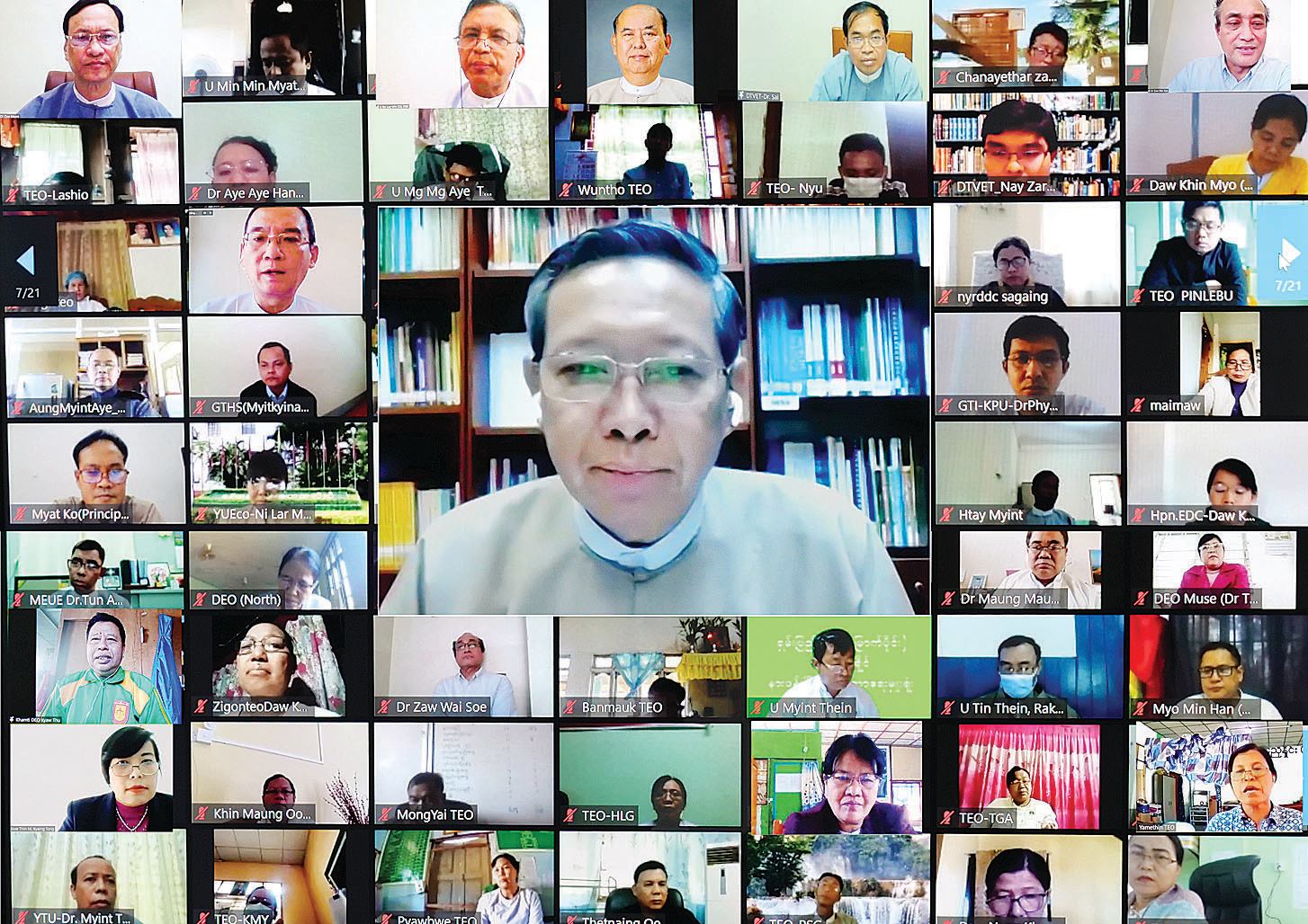 အမျိုးသားပညာရေးမဟာဗျူဟာစီမံကိန်း (၂၀၂၁-၂၀၃၀) (National Education Strategic Plan - NESP) (2021-2030) ရေးဆွဲရေးအတွက်  ပါမောက္ခချုပ်များကော်မတီ၊ ပါမောက္ခချုပ်များ၊ ကျောင်းအုပ်ကြီးများ၊ ပညာရေးမှူးများ၊ တာဝန်ရှိသူများနှင့် လုပ်ငန်းညှိနှိုင်းအစည်းအဝေးကို ယနေ့ နံနက် ၉ နာရီခွဲတွင် နေပြည်တော် ပညာရေးဝန်ကြီးဌာန ရုံးအမှတ် (၁၃) မှ ဗီဒီယိုကွန်ဖရင့်စနစ်ဖြင့် ကျင်းပသည်။