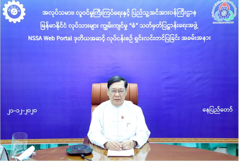 မြန်မာနိုင်ငံလုပ်သားများ ကျွမ်းကျင်မှု “စံ” သတ်မှတ်ပြဋ္ဌာန်းရေးအဖွဲ့ NSSA Web Portal ဒုတိယအဆင့် လုပ်ငန်းစဉ် ရှင်းလင်းတင်ပြခြင်း အခမ်းအနားကို ယနေ့နံနက် ၁၀ နာရီတွင် နေပြည်တော်ရှိ အလုပ်သမား၊ လူဝင်မှုကြီးကြပ်ရေးနှင့် ပြည်သူ့အင်အားဝန်ကြီးဌာန အစည်းအဝးခန်းမ၌ ဗီဒီယိုကွန်ဖရင့်စနစ်ဖြင့် ကျင်းပသည်။