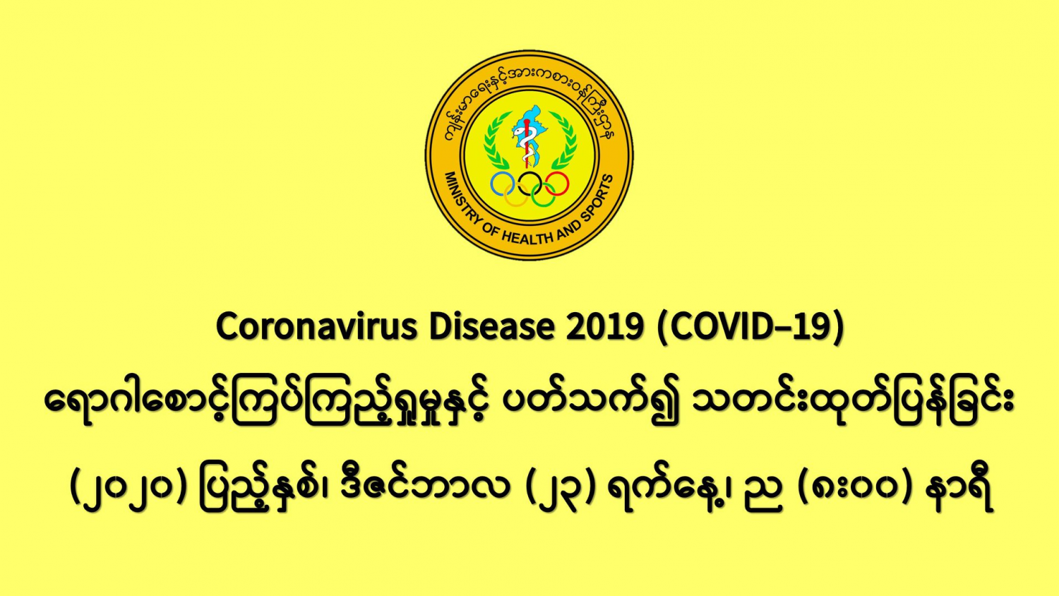 (၂၂-၁၂-၂၀၂၀) ရက်နေ့၊ ည (၈:၀၀) နာရီမှ (၂၃-၁၂-၂၀၂၀) ရက်နေ့၊ ည (၈:၀၀) နာရီ အတွင်း ဓာတ်ခွဲနမူနာ စုစုပေါင်း (၂၃,၀၇၂) ခုအား စစ်ဆေးပြီးစီးခဲ့ရာ COVID-19 ရောဂါ ဓာတ်ခွဲအတည်ပြု လူနာသစ် (၉၂၃) ဦး တွေ့ရှိရပါသည်။