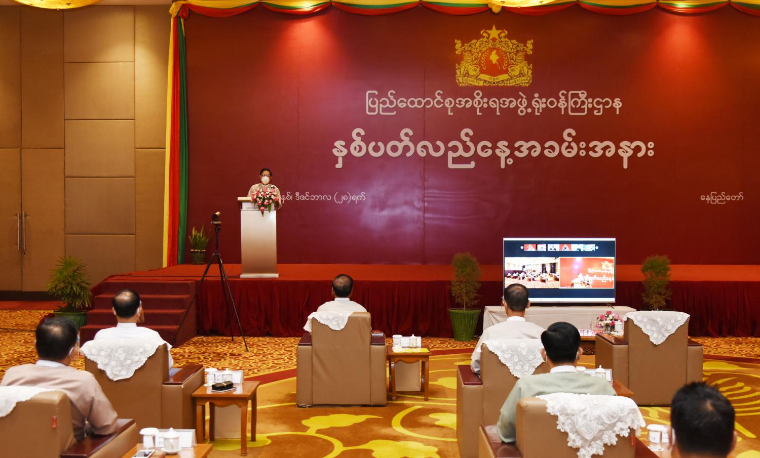 ထို့ပြင် One State One Township စီမံကိန်းအရ တိုင်းဒေသကြီးနှင့် ပြည်နယ်အလိုက် အကောင်အထည်ဖော် ဆောင်ရွက်ခဲ့တွင် အောင်မြင်စွာ အကောင်အထည်ဖော် ဆောင်ရွက်နိုင်ခဲ့သည့် မြို့နယ်များ ရှိသကဲ့သို့ COVID-19 ကာလအတွင်းတွင် အကောင်အထည်ဖော်မှု နှောင့်နှေးခဲ့ရသည့် မြို့နယ်များလည်း ရှိခဲ့ပါကြောင်း၊ ယင်းကိုလည်း ပြန်လည်ဆန်းစစ်နိုင်ရန်၊ အောင်မြင်ခဲ့သည့် တိုင်းဒေသကြီး/ပြည်နယ် အချို့တွင် မြို့နယ်အသစ်များ ထပ်မံရွေးချယ် ဆောင်ရွက်ရန်အတွက်လည်း စီစဉ်ဆောင်ရွက်နေပါကြောင်း။