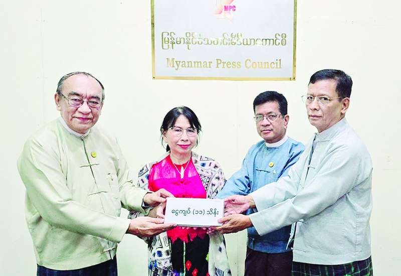 သက်ကြီးသတင်းစာ ပညာရှင်ကြီးများအတွက် ပထမအကြိမ်ထောက်ပံ့ကူညီမှုများကို ယခုနှစ်ဇန်နဝါရီလက ပြုလုပ်ပေးခဲ့ပြီး ၂၀၂၆ ခုနှစ် ဇန်နဝါရီလတွင် ဒုတိယအကြိမ် ထောက်ပံ့ကူညီလှူဒါန်းမှုများ ပြုလုပ်ပေးနိုင်ရန်အတွက် အလှူငွေပေးအပ်လှူဒါန်းပွဲကို ရန်ကုန်မြို့ ကုန်သည်လမ်းရှိ မြန်မာနိုင်ငံ သတင်းမီဒီယာကောင်စီရုံးတွင် ယနေ့ပြုလုပ်ရာ စွယ်စုံမီဒီယာဂရု(ပ်)မှ ဒေါက်တာ တင်ထွန်းဦးနှင့် ဇနီးဒေါက်တာခင်မိုးမိုးတို့က အလှူငွေကျပ် ၁၁ သိန်းကို သတင်းမီဒီယာဖွံ့ဖြိုးရေးကော်မတီခေါင်းဆောင် ဦးခင်မောင်ကျော်ဒင်အား ပေးအပ်လှူဒါန်းသည်။