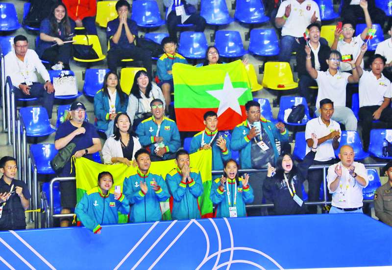 (၃၃) ကြိမ်မြောက် အရှေ့တောင် အာရှအားကစားပြိုင်ပွဲကို ထိုင်း နိုင်ငံ ဘန်ကောက်နှင့် ချွန်ဘူရီမြို့ တို့တွင် ကျင်းပပြုလုပ်လျက်ရှိပြီး မြန်မာအသင်းအနေဖြင့် စက်ဘီး၊ မြားပစ်၊ သေနတ်ပစ်၊ ဘိုးလင်း၊ ဘိလိယက်နှင့် စနူကာ၊ ကဘာဒီ၊ ပိုက်ကျော်ခြင်း၊ ဖူဆယ်၊ မွေ၊ လက်ဝှေ့၊ ကစ်ဘောက်ဆင်၊ ပြေးခုန်ပစ်၊ E-sports ၊ စစ်တုရင်၊ စားပွဲတင်တင်းနစ်၊ အပြည်ပြည် ဆိုင်ရာ လှေ၊ ရွက်လှေနှင့် အလေးမပြိုင်ပွဲများ၌ ဝင်ရောက်ယှဉ်ပြိုင်ခဲ့ရာ ယနေ့နံနက်ပိုင်းတွင် မြန်မာနိုင်ငံ အိုလံပစ်ကော်မတီအထွေထွေအတွင်းရေးမှူးအား ကစားနှင့်လူငယ်ရေးရာဝန်ကြီးဌာန ဒုတိယဝန်ကြီး ဦးထိန်လင်း၊ ပို့ဆောင်ရေးနှင့်ဆက်သွယ်ရေးဝန်ကြီးဌာန ဒုတိယဝန်ကြီး ဦးအောင်ကျော်ထွန်း၊ မြန်မာ အားကစားအဖွဲ့ခေါင်းဆောင်နှင့် အုပ်ချုပ်မှုအဖွဲ့ဝင်များ၊ မြန်မာ အားကစားအဖွဲ့ချုပ်ဥက္ကဋ္ဌများနှင့် တာဝန်ရှိသူများ တက်ရောက်ကြည့်ရှုအားပေးသည်။
