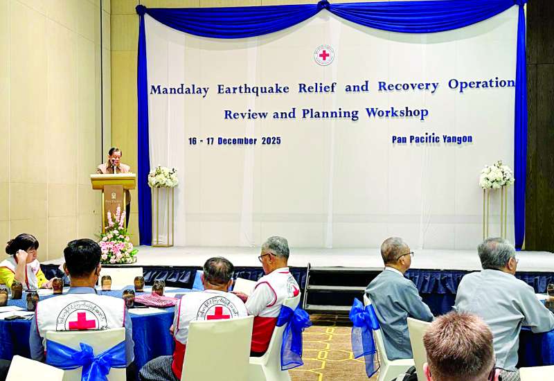 မြန်မာနိုင်ငံကြက်ခြေနီအသင်း Mandalay Earthquake Relief and Recovery Operation Review and Planning Workshop ဖွင့်ပွဲကို ယနေ့နံနက်ပိုင်းက ရန်ကုန်မြို့ ရှိ Pan Pacific Hotel တွင် ကျင်းပသည်။