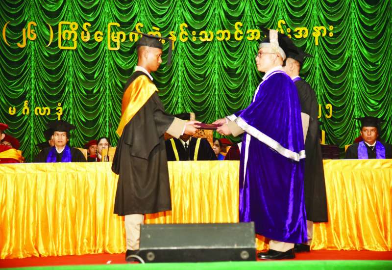 တပ်မတော်ဆေးတက္ကသိုလ်၏ (၂၆) ကြိမ်မြောက် ဘွဲ့နှင်းသဘင်အခမ်းအနားကို ယနေ့ မွန်းလွဲပိုင်းတွင် ရန်ကုန်တိုင်းဒေသကြီး မင်္ဂလာဒုံမြို့နယ်ရှိ တပ်မတော်ဆေးတက္ကသိုလ် ဘွဲ့နှင်းသဘင်ခန်းမ၌ ကျင်းပရာ တပ်မတော်ဆေးတက္ကသိုလ်ကျောင်းအုပ်ကြီး ဗိုလ်မှူးချုပ် စိုးညွန့်၊ တပ်မတော်ဆေးတက္ကသိုလ် ပါမောက္ခချုပ် ဗိုလ်မှူးချုပ် ခင်အောင်ထွန်းနှင့် တပ်မတော်ဆေးတက္ကသိုလ်မှ ပညာရေးအဖွဲ့ဝင်များ စုံညီစွာတက်ရောက်ကြသည်။