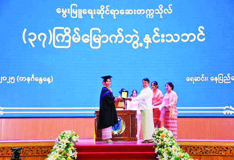 မွေးမြူရေးဆိုင်ရာ ဆေးတက္ကသိုလ်၏ (၃၇)ကြိမ်မြောက် ဘွဲ့နှင်းသဘင်အခမ်းအနားကို ယနေ့နံနက်ပိုင်းက ရေဆင်းစိုက်ပျိုးရေးတက္ကသိုလ်ဘွဲ့နှင်းသဘင်ခန်းမ၌ကျင်းပရာ စိုက်ပျိုးရေး၊ မွေးမြူရေးနှင့်ဆည်မြောင်းဝန်ကြီးဌာန ပြည်ထောင်စုဝန်ကြီး ဦးမင်းနောင်၊ ဒုတိယဝန်ကြီးများ၊ အမြဲတမ်းအတွင်းဝန်နှင့် ညွှန်ကြားရေးမှူးချုပ်များ၊ ပါမောက္ခချုပ်နှင့် ပါမောက္ခ/ ဌာနမှူးများ၊ ဆရာ ဆရာမများ၊ ဘွဲ့ရမောင်မယ်များနှင့် မိဘဆွေမျိုးများ တက်ရောက်ကြသည်။