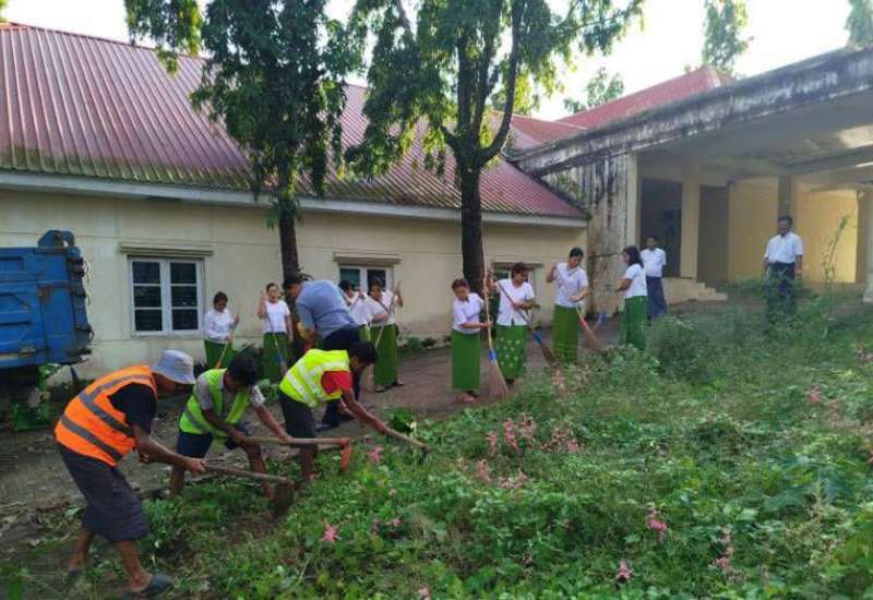 ၂၀၂၅-၂၀၂၆ ပညာသင်နှစ်တွင် ကျောင်းသား၊ ကျောင်းသူများ အဆင်ပြေချောမွေ့စွာ ပညာသင်ကြားနိုင်ရေးနှင့် စာသင်ကျောင်းများ ဥပဓိရုပ်ကောင်းမွန်စေရေးအတွက် တိုင်းဒေသကြီးနှင့် ပြည်နယ်အသီးသီးရှိ အခြေခံပညာကျောင်းများ၌ ကျောင်းပတ်ဝန်းကျင်သန့်ရှင်းသာယာလှပရေးအတွက် နယ်မြေခံတပ်မတော်သားများ၊ ဌာနဆိုင်ရာဝန်ထမ်းများ၊ လူမှုရေးအသင်းအဖွဲ့များနှင့် ဒေသခံပြည်သူများက စုပေါင်းသန့်ရှင်းရေးလုပ်ငန်းများ ဆောင်ရွက်လျက်ရှိသည်။