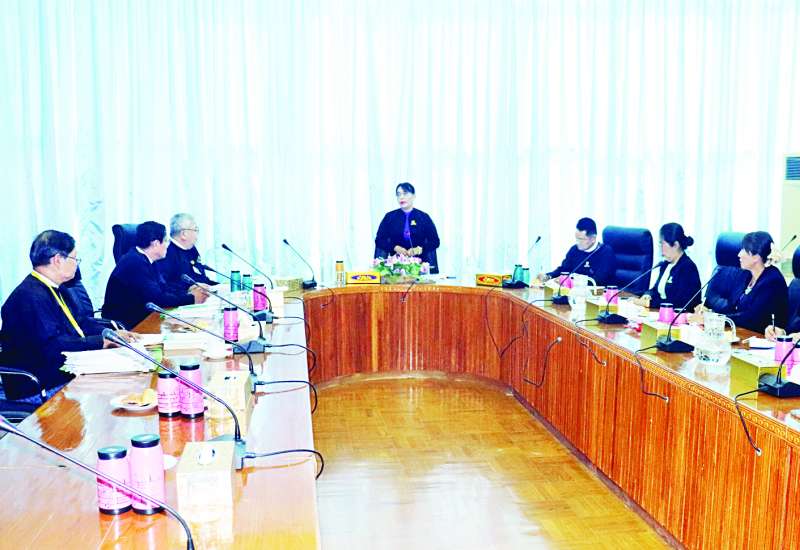 နိုင်ငံတော်ဖွဲ့စည်းပုံအခြေခံဥပဒေဆိုင်ရာခုံရုံး ဥပဒေအား တတိယအကြိမ်ပြင်ဆင်သည့် ဥပဒေ(မူကြမ်း)ဆိုင်ရာညှိနှိုင်းအစည်းအဝေးကို ယနေ့ နံနက် ၁၀ နာရီတွင် နေပြည်တော်ရှိ ဥပဒေရေးရာဝန်ကြီးဌာန အစည်းအဝေးခန်းမ၌ ကျင်းပသည်။