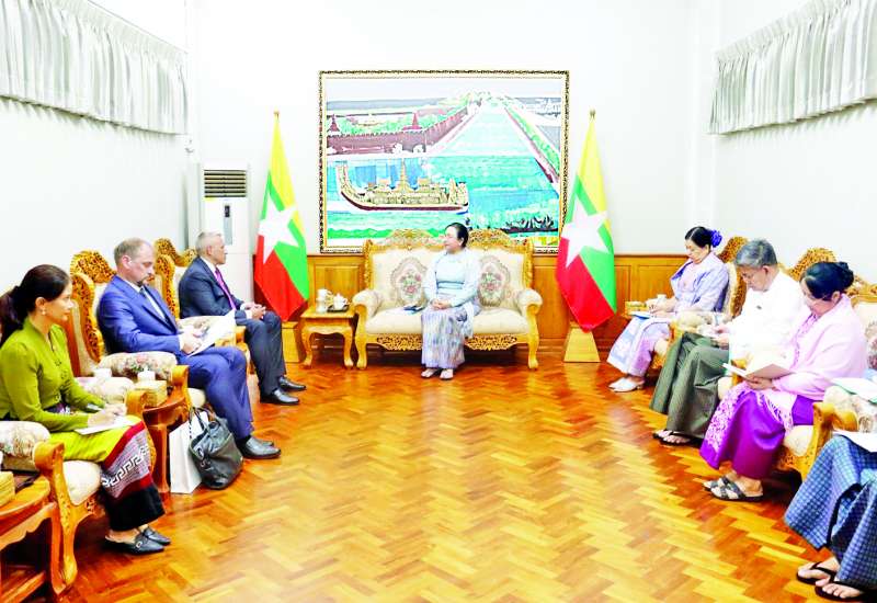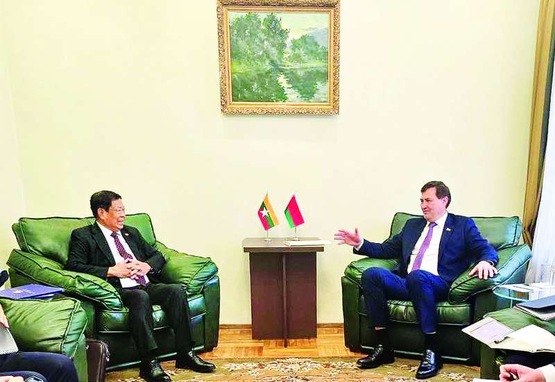 ရင်းနှီးမြှုပ်နှံမှုနှင့်နိုင်ငံခြားစီးပွားဆက်သွယ်ရေးဝန်ကြီးဌာန ပြည်ထောင်စုဝန်ကြီး ဒေါက်တာဝါဝါမောင်သည် ဟနွိုင်းမြို့အခြေစိုက် ဘယ်လာရုစ်သံရုံးမှ သံအမတ်ကြီး H.E. Mr. Uladzimir Baravikou ဦးဆောင်သော ကိုယ်စားလှယ်အဖွဲ့အား ယနေ့မွန်းလွဲပိုင်းတွင် နေပြည်တော်ရှိ ရင်းနှီးမြှုပ်နှံမှုနှင့်နိုင်ငံခြားစီးပွားဆက်သွယ်ရေးဝန်ကြီးဌာန၌ လက်ခံတွေ့ဆုံသည်။