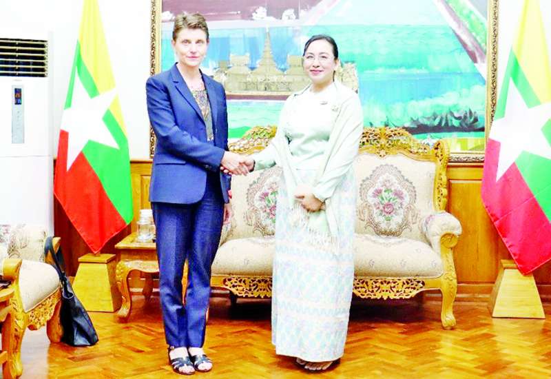 ရင်းနှီးမြှုပ်နှံမှုနှင့်နိုင်ငံခြားစီးပွားဆက်သွယ်ရေးဝန်ကြီးဌာန ပြည်ထောင်စုဝန်ကြီး ဒေါက်တာဝါဝါမောင်သည် မြန်မာနိုင်ငံဆိုင်ရာ ကုလသမဂ္ဂယာယီဌာနေညှိနှိုင်းရေးမှူးနှင့် လူသားချင်းစာနာထောက်ထားမှုဆိုင်ရာ ယာယီညှိနှိုင်းရေးမှူးဖြစ်သူ Ms. Gwyn Lewis ဦးဆောင်သော ကိုယ်စားလှယ်အဖွဲ့အား ယနေ့နံနက်ပိုင်းတွင် အဆိုပါဝန်ကြီးဌာန ရုံးအမှတ် (၁) ၌ လက်ခံတွေ့ဆုံသည်။