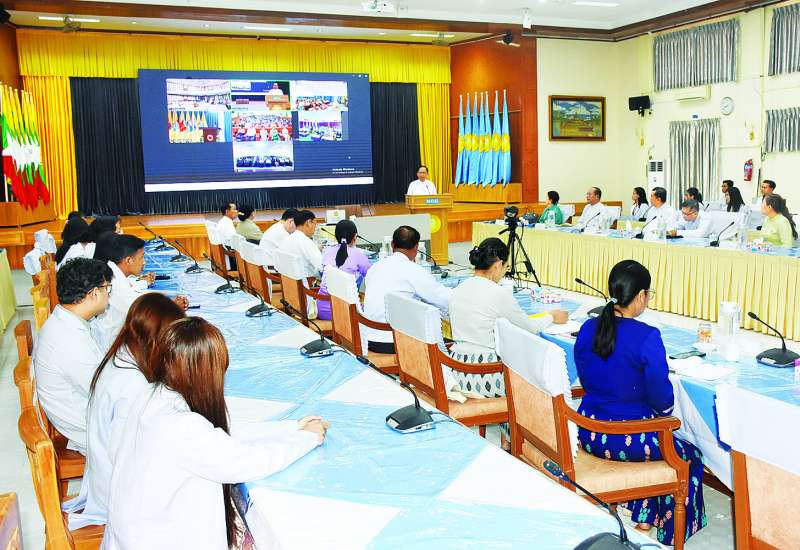 ဆေးတက္ကသိုလ်များ၏ အလုပ်သင်ဆရာဝန် လေ့ကျင့်သင်ကြားရေးဆေးရုံကြီးများတွင် အောက်တိုဘာ ၁ ရက်မှစတင်ပြီး အလုပ်သင်ဆရာဝန်များအဖြစ် တာဝန်ထမ်းဆောင်နေသူ မောင်မယ်သစ်လွင် အလုပ်သင်ဆရာဝန်များကို ကြိုဆိုပွဲအား ယနေ့နံနက်ပိုင်းက နေပြည်တော်ရှိ ကျန်းမာရေးဝန်ကြီးဌာန၌ Semi-virtual စနစ်ဖြင့် ကျင်းပသည်။