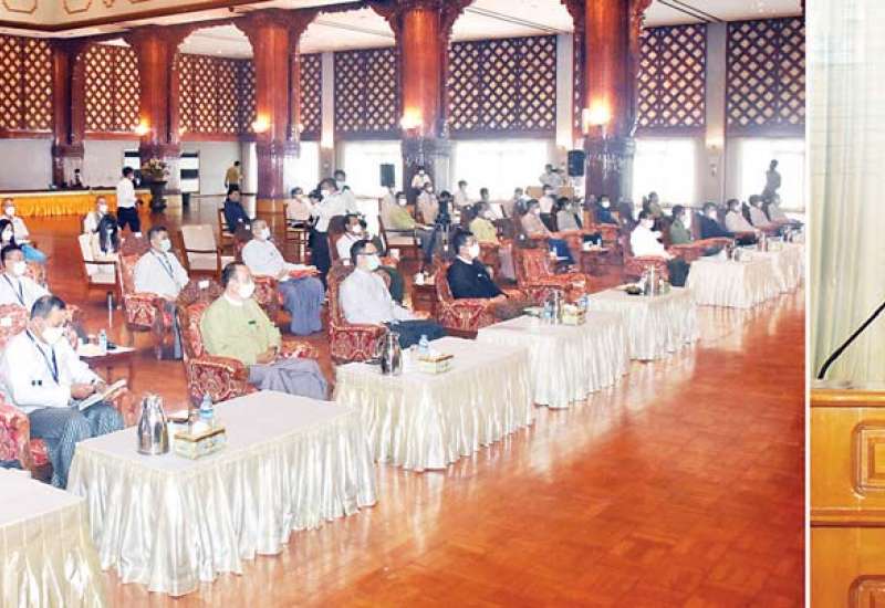 ပြည်ထောင်စုနယ်မြေ ၊ နေပြည်တော် ၂၀၂၁-၂၀၂၂ ဘဏ္ဍာနှစ်၊ (၆) လ (အောက်တိုဘာလမှ မတ်လ) စီမံကိန်းရည်မှန်းချက် များနှင့် နေပြည်တော်ကောင်စီ၏ ငွေလုံးငွေရင်း ရန်ပုံငွေဖြင့် ဆောင်ရွက်မည့် ဒေသဖွံ့ဖြိုးရေးလုပ်ငန်းများ အပ်နှံတာဝန်ပေးအပ်ပွဲ အခမ်းအနားကို ယနေ့နံနက်(၁၀)နာရီခွဲတွင် နေပြည်တော်ကောင်စီရုံး အစည်းအဝေးခန်းမ၌ ကျင်းပသည်။