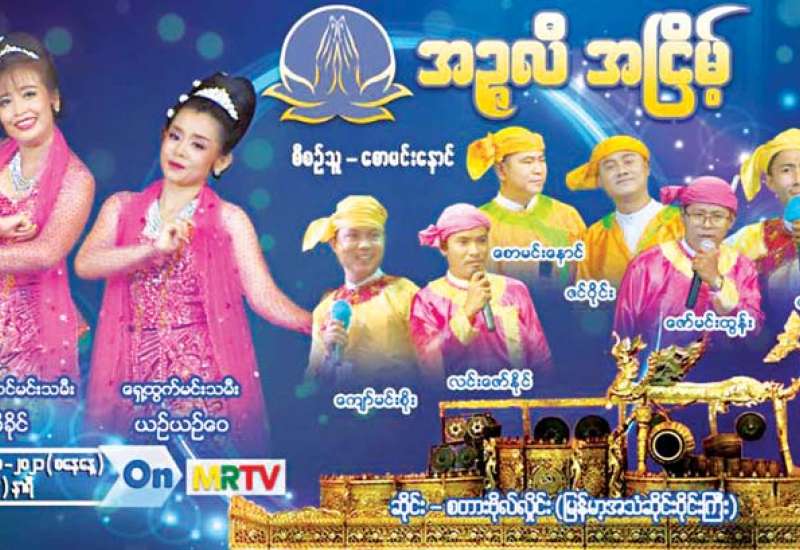 အများပြည်သူ ပျော်ရွှင်စေရန်၊ အပန်းပြေစေရန်နှင့် စိတ်ခွန်အားသစ်များ ရရှိနိုင်ရန် အတွက် မြန်မာ့အသံနှင့်ရုပ်မြင်သံကြားမှ ဖျော်ဖြေရေးအစီအစဉ်များကို တင်ဆက်လျက်ရှိ ရာ “အဥ္ဇလီအငြိမ့်” ဖျော်ဖြေပွဲကို အောက်တိုဘာ (၂)ရက်၊ စနေနေ့ ည(၈)နာရီသတင်း အပြီးတွင် မြန်မာ့အသံနှင့်ရုပ်မြင်သံကြား၏ MRTV-HD Channel မှ ထုတ်လွှင့်ပြသမည် ဖြစ်သည်။