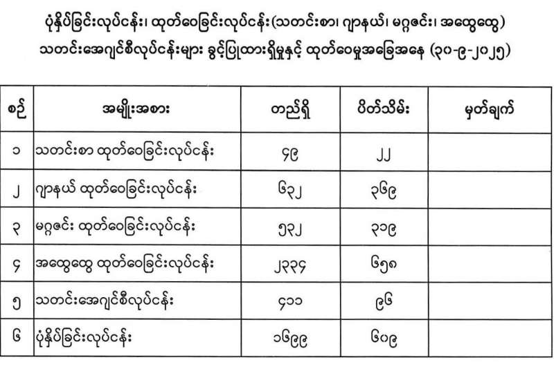 ကျန်းမာရေးဝန်ကြီးဌာနသည် ကိုဗစ်-၁၉ ရောဂါ စောင့်ကြပ်ကြည့်ရှုခြင်းလုပ်ငန်းများကို စဉ်ဆက်မပြတ်ဆောင်ရွက်လျက်ရှိရာ (၅-၁၀-၂၀၂၅) ရက်နေ့၊ ည (၈:၀၀) နာရီမှ (၁၂-၁၀-၂၀၂၅) ရက်နေ့၊ ည (၈:၀၀) နာရီအထိ ရက်သတ္တပတ်အတွင်း ဓာတ်ခွဲနမူနာစုစုပေါင်း (၁၃၃) ခုအား စစ်ဆေးပြီးစီးခဲ့ရာ ကိုဗစ်-၁၉ ရောဂါ ဓာတ်ခွဲအတည်ပြုလူနာသစ် မတွေ့ရှိရပါ။ အစီရင်ခံကာလအတွင်း ပြင်းထန်လူနာ၊ အထူးကြပ်မတ်ကုသပေးသောလူနာနှင့် ကိုဗစ်-၁၉ ရောဂါဖြင့် သေဆုံးလူနာမရှိပါ။