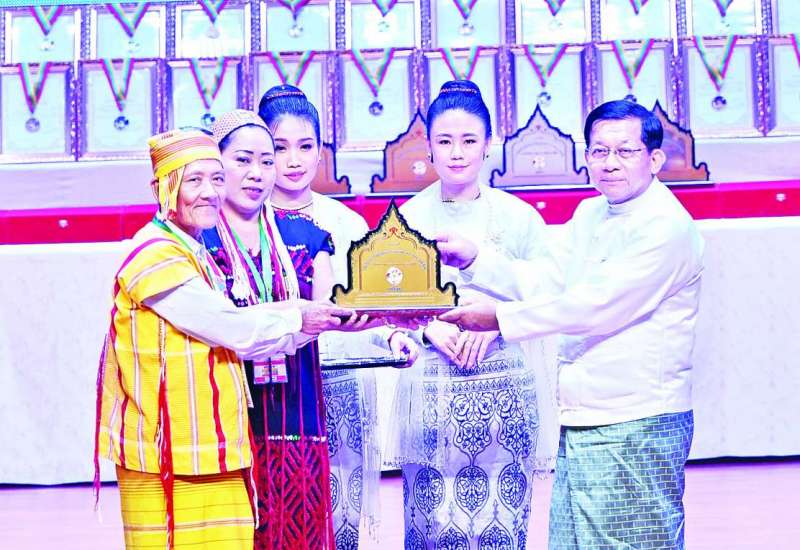 (၂၆) ကြိမ်မြောက် မြန်မာ့ရိုးရာယဉ်ကျေးမှု အဆို၊ အက၊ အရေး၊ အတီးပြိုင်ပွဲ ဂုဏ်ပြုမှတ်တမ်းလွှာပေးအပ်ပွဲနှင့် ဂုဏ်ပြုညစာစားပွဲအခမ်းအနားကို ယနေ့ညနေပိုင်းတွင် နေပြည်တော်ရှိ ဇေယျာသီရိဗိမာန်၊ ရေခဲတောင်ခန်းမ၌ ကျင်းပရာ ပြည်ထောင်စုသမ္မတမြန်မာနိုင်ငံတော် ယာယီသမ္မတ နိုင်ငံတော်လုံခြုံရေးနှင့်အေးချမ်းသာယာရေးကော်မရှင်ဥက္ကဋ္ဌ ဗိုလ်ချုပ်မှူးကြီး မင်းအောင်လှိုင် တက်ရောက်ချီးမြှင့်သည်။
