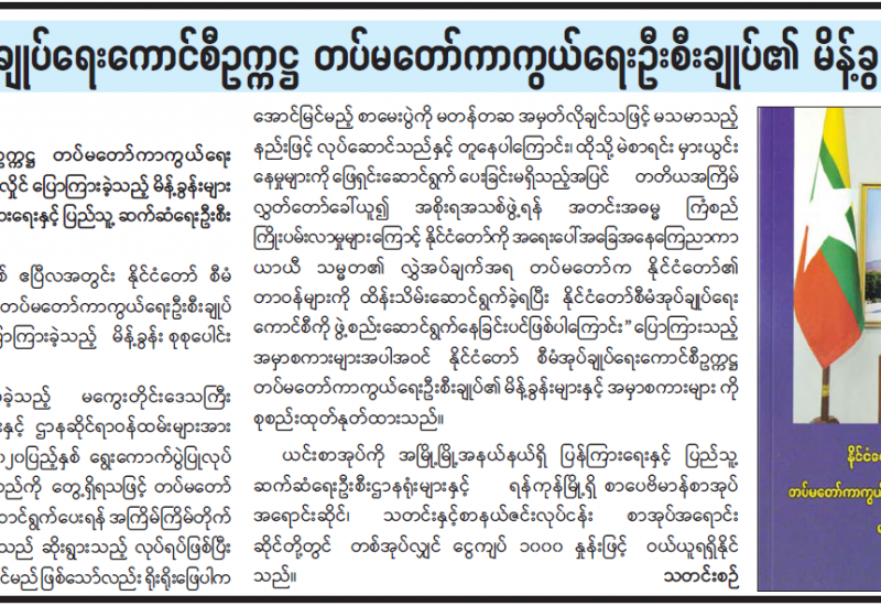 အမျိုးသားသဘာဝဘေးအန္တရာယ်ဆိုင်ရာ စီမံခန့်ခွဲမှုကော်မတီ၏ မူဝါဒများနှင့်အညီ ပြန်လည် ထူထောင် ရေးနှင့် ပြန်လည်တည်ဆောက်ရေးလုပ်ငန်းကော်မတီ၏ ရှေ့ဆက်လက် အကောင် အထည်ဖော် ဆောင်ရွက် မည့် လုပ်ငန်းစဉ်များ၊ ဦးစားပေးဆောင်ရွက်မည့် အစီအမံ များနှင့် ပတ်သက်၍ လုပ်ငန်း ညှိနှိုင်း အစည်း အဝေးကို ယနေ့ ဆောက်လုပ်ရေးဝန်ကြီးဌာန အစည်းအဝေးခန်းမဆောင်၌ ကိုဗစ်-၁၉ ညွှန်ကြား ချက်များနှင့် အညီ ကျင်းပသည်။