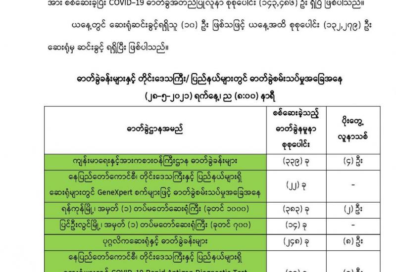 အလုပ်သမား၊ လူဝင်မှုကြီးကြပ်ရေးနှင့် ပြည်သူ့အင်အားဝန်ကြီးဌာန ပြည်ထောင်စုဝန်ကြီး ဦးမြင့်ကြိုင်သည် မေ ၂၆ ရက် နံနက် ၈ နာရီခွဲတွင် ရန်ကုန်တိုင်းဒေသကြီး တာမွေမြို့နယ်ရှိ အလုပ်သမားဆေးရုံကြီး (ရန်ကုန်) သို့ သွားရောက်ကြည့်ရှုစစ်ဆေးသည်။