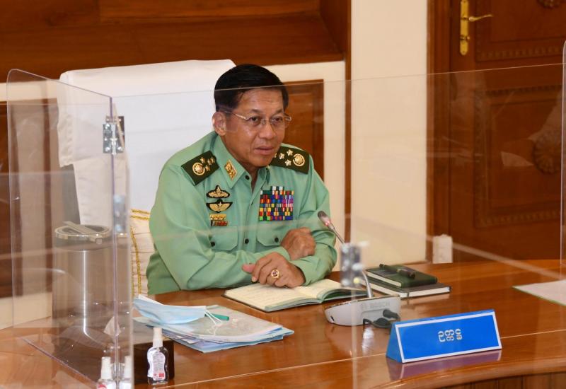 နိုင်ငံတော်စီမံအုပ်ချုပ်ရေး ကောင်စီအစည်းအဝေး (၁၁/၂၀၂၁) ကို ယနေ့မွန်းလွဲပိုင်းတွင် နေပြည်တော်ရှိ နိုင်ငံတော်စီမံအုပ်ချုပ်ရေးကောင်စီဥက္ကဋ္ဌရုံး အစည်းအဝေးခန်းမ၌ ကျင်းပရာ နိုင်ငံတော်စီမံအုပ်ချုပ်ရေးကောင်စီဥက္ကဋ္ဌ၊ တပ်မတော်ကာကွယ်ရေးဦးစီးချုပ် ဗိုလ်ချုပ်မှူးကြီး မင်းအောင်လှိုင် တက်ရောက်အမှာစကား ပြောကြားသည်။