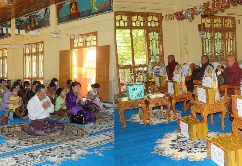 ဗုဒ္ဓဘာသာတို့၏ နေ့ထူးနေ့မြတ်ကြီးဖြစ်သော ကဆုန်လပြည့်နေ့၌ မြန်မာနိုင်ငံ တော်ဗဟိုဘဏ်ဥက္ကဋ္ဌ ဦးသန်းညိန်းနှင့် ဇနီး ဒေါ်ခင်သွယ်သွယ်မြင့် တို့ကိုအမှူးထား၍ မြန်မာနိုင်ငံတော်ဗဟိုဘဏ်မိသားစုက နေပြည်တော် တပ်ကုန်းမြို့ မြို့မသီဟနာဒ ကျောင်းတိုက်ရှိ သံဃာတော် ၃၅ ပါးတို့အား နေ့ဆွမ်းဆက်ကပ် လှူဒါန်း၍ သင်္ကန်း၊ ဆွမ်း ဆန်တော်များ ဆက်ကပ်လှူဒါန်းကြသည်။