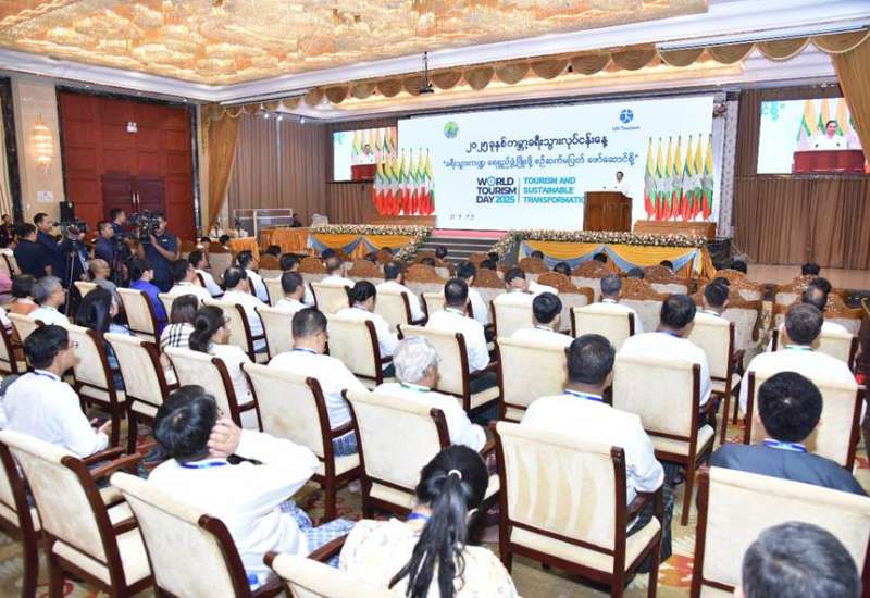 ၂၀၂၅ ခုနှစ်၊ ကမ္ဘာ့ခရီးသွားလုပ်ငန်းနေ့ အထိမ်းအမှတ်အခမ်းအနားကို ယနေ့နံနက်ပိုင်းတွင် နေပြည်တော်ရှိ မင်္ဂလာသီရိဟိုတယ်၌ ကျင်းပပြုလုပ်ရာ နိုင်ငံတော်ဝန်ကြီးချုပ် ဦးညိုစော တက်ရောက်အမှာစကားပြောကြားသည်။