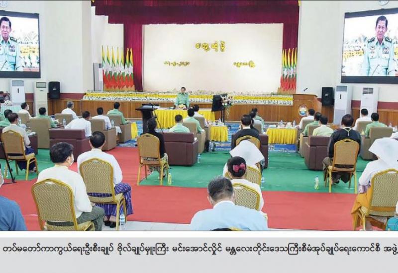 နိုင်ငံတော်စီမံအုပ်ချုပ်ရေးကောင်စီ ဥက္ကဋ္ဌ၊ တပ်မတော်ကာကွယ်ရေးဦးစီး ချုပ် ဗိုလ်ချုပ် မှူးကြီးမင်းအောင်လှိုင်သည် ယနေ့မွန်းလွဲပိုင်းတွင် မန္တလေးတိုင်း ဒေသကြီး စီမံအုပ်ချုပ်ရေး ကောင်စီအဖွဲ့ဝင်များနှင့် ဌာနဆိုင်ရာဝန်ထမ်းများအား တိုင်းဒေသကြီး စီမံအုပ်ချုပ်ရေး ကောင်စီရုံး၌ သွားရောက်တွေ့ဆုံ အမှာစကား ပြောကြားသည်။