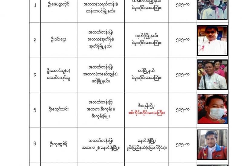 နိုင်ငံတော်၏အုပ်ချုပ်မှုယန္တရားပျက်ပြားစေရန် ရည်ရွယ်ချက်ဖြင့် နိုင်ငံ့ဝန်ထမ်း များနှင့် ပညာရေး ဝန်ထမ်း များအား CDM လှုပ်ရှားမှုများတွင် ပါဝင်လာစေရန်လှုံ့ဆော်ခြင်း၊ ၎င်းတို့ကိုယ်တိုင် CDM လှုပ်ရှား မှုများ တွင် ပါဝင် လုပ်ဆောင်ခြင်း၊ CDM လှုပ်ရှားမှုအပေါ် ထောက်ခံအားပေးခြင်း၊ CRPH မတရားအသင်းအား ထောက်ခံ အားပေး ခြင်းတို့ကို ဆောင်ရွက်လျက်ရှိသော အောက်ဖော်ပြပါ ပညာရေးဝန်ထမ်းများအား ရာဇသတ်ကြီး ဥပဒေပုဒ်မ ၅၀၅-က ဖြင့် အမှုဖွင့်အရေးယူဆောင်ရွက်ထားပြီးဖြစ်ပါသည်။