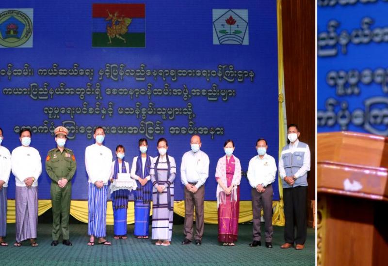 ကယားပြည်နယ်အတွင်းရှိ စေတနာ့ဝန်ထမ်းအဖွဲ့အစည်းများ၊ မသန်စွမ်း သူများ နှင့်သက်ကြီးရွယ်အိုများအတွက် ထောက်ပံ့ခြင်းအခမ်းအနားကို မေ ၁ ရက် နံနက်ပိုင်းတွင် လွိုင်ကော်မြို့ရှိ ကယားပြည်နယ်ခန်းမ၌ ကျင်းပသည်။