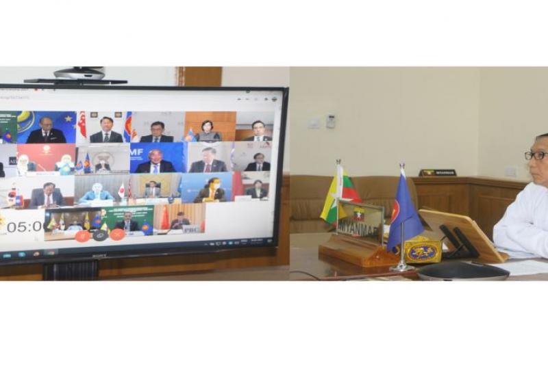 နေပြည်တော် မေ ၃ (၂၄)ကြိမ်မြောက် အာဆီယံ+၃ ဘဏ္ဍာရေးဝန်ကြီးများနှင့် ဗဟိုဘဏ်ဥက္ကဋ္ဌများ အစည်းအဝေးကို ယနေ့နံနက် ၉ နာရီတွင် Virtual စနစ်ဖြင့်ကျင်းပရာ စီမံကိန်း၊ ဘဏ္ဍာရေးနှင့် စက်မှုဝန်ကြီးဌာန ပြည်ထောင်စုဝန်ကြီး ဦးဝင်းရှိန် နေပြည်တော်မှ ပါဝင်တက်ရောက်သည်။