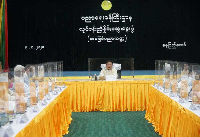 ရင်းနှီးမြှုပ်နှံမှုနှင့်သက်ဆိုင်သည့် စီးပွားရေးဆိုင်ရာ လိုင်စင်၊ ပါမစ်၊ ထောက်ခံ ချက်များ ပြန်လည်သုံးသပ်ခြင်း အစည်းအဝေးကို ယနေ့မွန်းလွဲပိုင်းက ရုံးအမှတ် (၁)၊ ရင်းနှီးမြှုပ်နှံမှုနှင့် နိုင်ငံခြား စီးပွားဆက်သွယ်ရေးဝန်ကြီးဌာန၊ ပြည်ထောင်စုဝန်ကြီးရုံးတွင် Video Conferencing ဖြင့် ကျင်းပသည်။