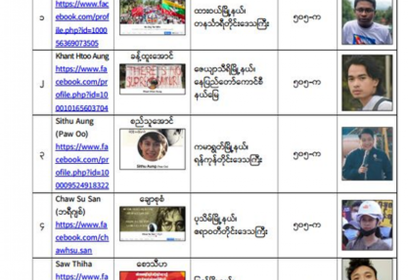 ၁။ နိုင်ငံတော်၏အုပ်ချုပ်မှုယန္တရား ပျက်ပြားစေရန် ရည်ရွယ်ချက်ဖြင့် နိုင်ငံ့ဝန်ထမ်းများအား CDM လှုပ်ရှားမှုတွင် ပါဝင်စေရန် လှုံ့ဆော်ခြင်း၊ CRPH မတရားအသင်းအား ထောက်ခံသည့် အကြောင်းအရာများ၊ မမှန်သတင်းများအား ဖြန့်ဝေခြင်း၊ နိုင်ငံတော် တည်ငြိမ်အေးချမ်းမှုကို ပျက်ပြားစေပြီး ဆူပူအုံးကြွမှု ဖြစ်ပေါ်စေရန်နှင့် အများပြည်သူ အထိတ်တလန့်ဖြစ်စေရန်အတွက် သွေးထိုး လှုံ့ဆော်မှုများပြုလုပ်ခြင်း၊ Social Punishment ပြုလုပ်ခြင်းများကို လှုမှုကွန်ရက်စာမျက်နှာများတွင် ရည်ရွယ်ချက်ရှိရှိ ဖော်ပြခြင်းနှင့် ဖြန့်ဝေခြင်းများ ဆောင်ရွက်လျက်ရှိသည့် အောက်ပါကျောင်းသားသမဂ္ဂအဖွဲ့ဝင်များနှင့် အခြား ပါဝင်ပတ်သက်သူများအား ရာဇသတ်ကြီး ပုဒ်မ ၅၀၅ - က ဖြင့် အမှုဖွင့် အရေးယူ ဆောင်ရွက်လျက်ရှိကြောင်း ထုတ်ပြန်အပ်ပါသည်။