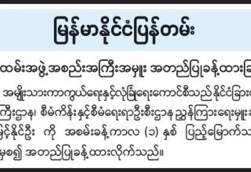 ရန်ကုန်မြို့နှင့် မန္တလေးမြို့အတွက် ရည်ညွှန်းလက်ကားဈေးနှုန်းများနှင့် ပြည်ထောင်စုနယ်မြေ နေပြည်တော်၊ တိုင်းဒေသကြီး/ပြည်နယ် မြို့တော်များအတွက် ရည်ညွှန်းလက်လီဈေးနှုန်းများ