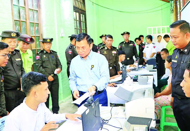 ဧရာဝတီတိုင်းဒေသကြီး ကျုံပျော်မြို့နယ်အတွင်းရှိ အိမ်ထောင်စုလူဦးရေစာရင်းနှင့် နိုင်ငံသားစိစစ်ရေးကတ် ပျက်စီး/ ပျောက်ဆုံးသွားသည့် ဒေသခံပြည်သူများနှင့် နိုင်ငံသားစိစစ်ရေးကတ် မရရှိသေးသူများအား မြို့နယ်ဦးစီးမှူးရုံး၌ ဝန်ထမ်းများက ပန်းခင်းစီမံချက်အဆင့် (၃) ဖြင့် ဆောင်ရွက်ပေးနေမှုကို ယနေ့နံနက်ပိုင်းက လူဝင်မှုကြီးကြပ်ရေးနှင့် ပြည်သူ့အင်အားဝန်ကြီးဌာန ပြည်ထောင်စုဝန်ကြီး ဦးမြင့်ကြိုင်သည် တာဝန်ရှိသူများနှင့်အတူ သွားရောက်ကြည့်ရှုအားပေးသည်။