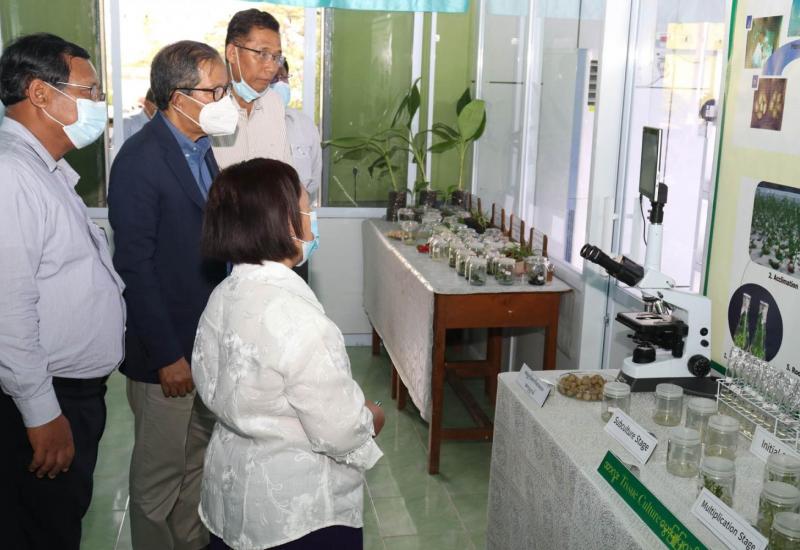 ဆောက်လုပ်ရေးဝန်ကြီးဌာန ပြည်ထောင်စုဝန်ကြီး ဦးရွှေလေးသည် ဧပြီ (၂၅) ရက် နံနက်ပိုင်းတွင် တာချီလိတ် - မိုင်းဆတ်လမ်း ကွန်ကရစ်ခင်းခြင်းလုပ်ငန်းများ ဆောင်ရွက်ပြီးစီးမှုတို့ကို လမ်းတစ်လျှောက်ကြည့်ရှုစစ်ဆေးပြီး လမ်းစခန်းရှင်းလင်းဆောင်တွင် လမ်းဦးစီးဌာန ညွှန်ကြားရေးမှူး (မြို့ပြ) ဦးရဲလင်း က မိုင်းဆတ် - တာချီလိတ်လမ်း (0.0 Km မှ 97.76 Km အတွင်း) ကွန်ကရစ်လမ်း 13.09 Km၊ ကတ္တရာလမ်း 11.30 Km၊ ကျောက်လမ်း 52.818 Km၊ အမာခံလမ်း 15.96 Km ၊ မြေလမ်း 4.525 Km ၊ စုစုပေါင်း 97.76 Km အား ဘဏ္ဍာရေး နှစ်အလိုက် လုပ်ငန်းဆောင်ရွက်ထားရှိမှုနှင့် ဆက်လက်ဆောင်ရွက်မည့် လုပ်ငန်းအစီအစဉ်များကို မြေပုံကားချပ်ဖြင့် တင်ပြသည်။