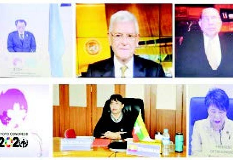 ဂျပန်နိုင်ငံ ကျိုတိုအပြည်ပြည်ဆိုင်ရာ ညီလာခံ စင်တာ၌ ကျင်းပသော 14th United Nations Congress on Crime Prevention and Criminal Justice သို့ ပြည်ထောင်စုရှေ့နေချုပ် ဒေါက်တာ သီတာဦး ဦးဆောင်၍ ပြည်ထဲရေး ဝန်ကြီးဌာနနှင့် ပြည်ထောင်စုရှေ့နေချုပ်ရုံးတို့ပါဝင်သည့် မြန်မာ ကိုယ်စားလှယ်အဖွဲ့ သည် ဗီဒီယို ကွန်ဖရင့် စနစ်ဖြင့် တက်ရောက်ကြသည်။