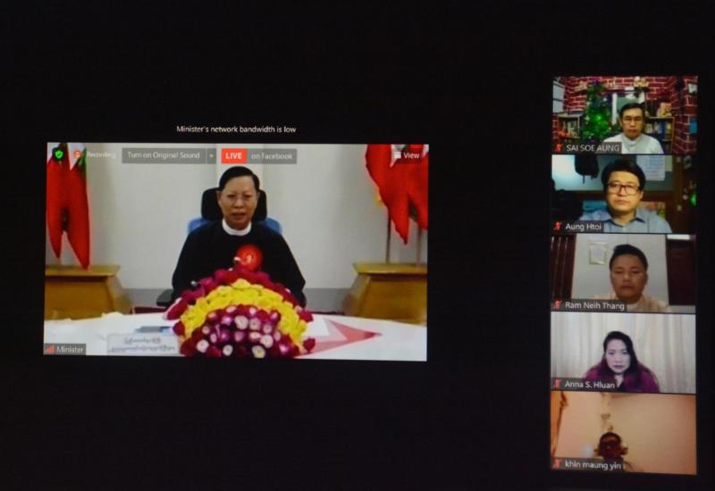 မြန်မာနိုင်ငံ ဧဝံဂေလိခရစ်ယာန်မဟာမိတ်အဖွဲ့ချုပ်(MECA)မှ ကြီးမှူး၍ ၂၀၂၀ ပြည့်နှစ် ခရစ္စမတ်အကြို ကျေးဇူးတော်ချီးမွမ်းခြင်း အခမ်းအနားကို ယနေ့ညနေ ၅ နာရီတွင် ရန်ကုန်မြို့၊ ဒဂုံမြို့သစ်(မြောက်ပိုင်း) မြို့နယ်ရှိ ယုံကြည်သူများအသင်းတော်၌ ကျန်းမာရေးနှင့်အားကစားဝန်ကြီးဌာန၏ COVID-19 ရောဂါ ထိန်းချုပ်၊ တားဆီး၊ ကာကွယ်ရေးဆိုင်ရာ ညွှန်ကြားချက်များနှင့်အညီ ကျင်းပရာ ဒုတိယသမ္မတ ဦးဟင်နရီဗန်ထီးယူ၏ဇနီး ဒေါက်တာရွှေလွှမ်းနှင့် သာသနာရေးနှင့်ယဉ်ကျေးမှုဝန်ကြီးဌာန၊ ပြည်ထောင်စုဝန်ကြီး သူရဦးအောင်ကို တို့က ဗီဒီယိုကွန်ဖရင့်စနစ်ဖြင့် တက်ရောက် နှုတ်ခွန်းဆက် အမှာစကား ပြောကြားကြသည်။