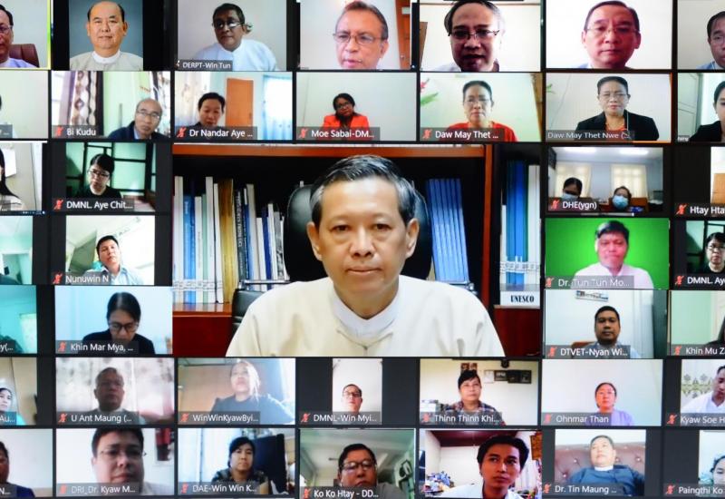 အမျိုးသားပညာရေးမဟာဗျူဟာစီမံကိန်း (၂၀၂၁-၂၀၃၀) (National Education Strategic Plan-NESP 2021-2030) ရေးဆွဲခြင်းအတွက် ပညာရေးဝန်ကြီးဌာန ဝန်ကြီးရုံးနှင့် ဦးစီးဌာနများမှ အရာထမ်းများ၊ စိတ်ပါဝင်စားသူ အမှုထမ်းများနှင့် NESP 2 ရေးဆွဲရေးအဖွဲ့များ (Drafting Teams) နှင့် ရှင်းလင်းဆွေးနွေးပွဲကို ယနေ့ နံနက် ၉ နာရီခွဲတွင် နေပြည်တော်၊ ပညာရေးဝန်ကြီးဌာနမှ ဗီဒီယို ကွန်ဖရင့်စနစ်ဖြင့် ကျင်းပသည်။