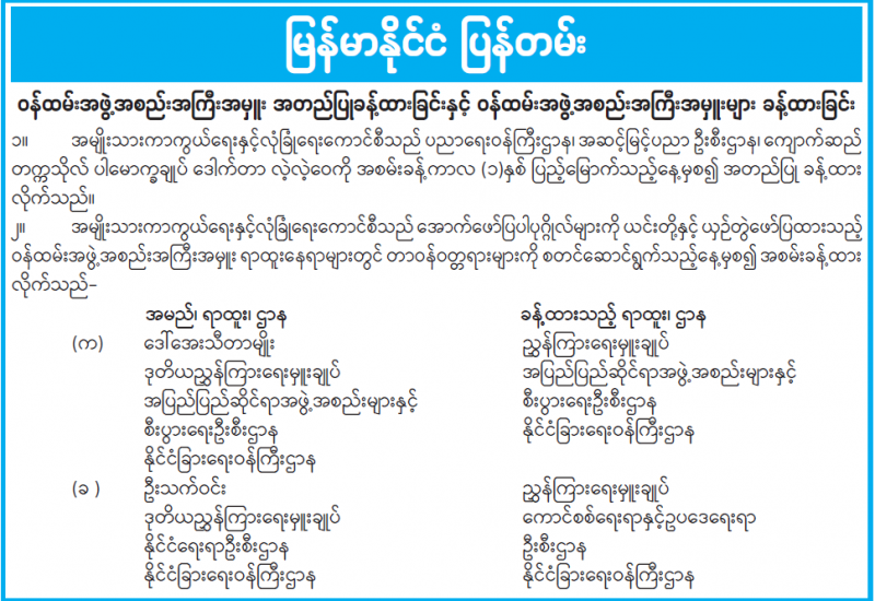 ဝန်ထမ်းအဖွဲ့အစည်းအကြီးအမှူး အတည်ပြုခန့်ထားခြင်းနှင့် ဝန်ထမ်းအဖွဲ့အစည်းအကြီးအမှူးများ ခန့်ထားခြင်း