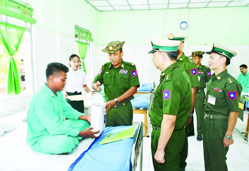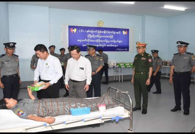 ကချင်ပြည်နယ် မြစ်ကြီးနားမြို့ရှိ တပ်မတော်ဆေးရုံ၊ ရန်ကုန်တိုင်းဒေသကြီး မင်္ဂလာဒုံမြို့နယ်ရှိ တပ်မတော်အရိုးရောဂါအထူးကု ဆေးရုံကြီး (ခုတင်-၅၀၀)နှင့် တပ်မတော်ဆေးရုံကြီး (ခုတင်-၁၀၀၀)၊ မန္တလေးတိုင်းဒေသကြီး မန္တလေးမြို့၊ နန်းမြို့တွင်း၊ ပြင်ဦးလွင်မြို့နှင့် မိတ္ထီလာမြို့တို့ရှိ တပ်မတော်ဆေးရုံများ၊ ပဲခူးတိုင်းဒေသကြီး ပြည်မြို့ရှိ တပ်မတော်ဆေးရုံတို့၌ တက်ရောက်ဆေးကုသ မှုခံယူလျက်ရှိသော အရာရှိ၊ စစ်သည်၊ မိသားစုဝင်များ၊ စစ်မှုထမ်းဟောင်းအဖွဲ့ဝင်များ၊ မြန်မာနိုင်ငံ ရဲတပ်ဖွဲ့ဝင်များ၊ ပြည်သူ့စစ် (ဌာနေ) တပ်ဖွဲ့ဝင်များနှင့် ဒေသခံပြည်သူများအား ယမန်နေ့တွင် သက်ဆိုင်ရာ တိုင်းစစ်ဌာနချုပ်များမှ တိုင်းမှူးများနှင့် တာဝန်ရှိသူများက သွားရောက်ကြည့်ရှု၍ တစ်ဦးချင်း၏ ရောဂါဖြစ်ပွားမှု၊ ဆေးဝါးကုသပေးထားမှုနှင့် ကျန်းမာရေးတိုးတက်ကောင်းမွန်မှု အခြေအနေများကို မေးမြန်းအားပေးစကား ပြောကြားပြီး အာဟာရဖြည့် စားသောက်ဖွယ်ရာများ ပေးအပ်သည်။