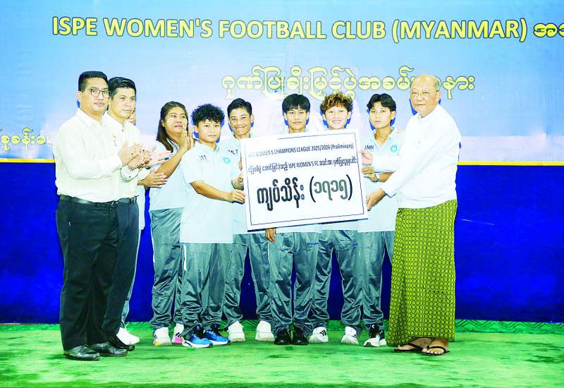 AFC WOMEN’S CHAMPIONS LEAGUE 2025/2026 (Preliminary) ခြေစစ်ပွဲအောင်မြင်ခဲ့သည့် ISPE WFC (MYANMAR) အသင်းအားဂုဏ်ပြုချီးမြှင့်သည့် အခမ်းအနားကို ယနေ့နံနက် ၁၀ နာရီတွင် ရန်ကုန်တိုင်းဒေသကြီး တာမွေမြို့နယ် ကျိုက္ကဆံအားကစားကွင်းရှိ အားကစားနှင့် ကာယပညာသိပ္ပံ(ရန်ကုန်) ပြည်ထောင်စုခန်းမ၌ ကျင်းပသည်။