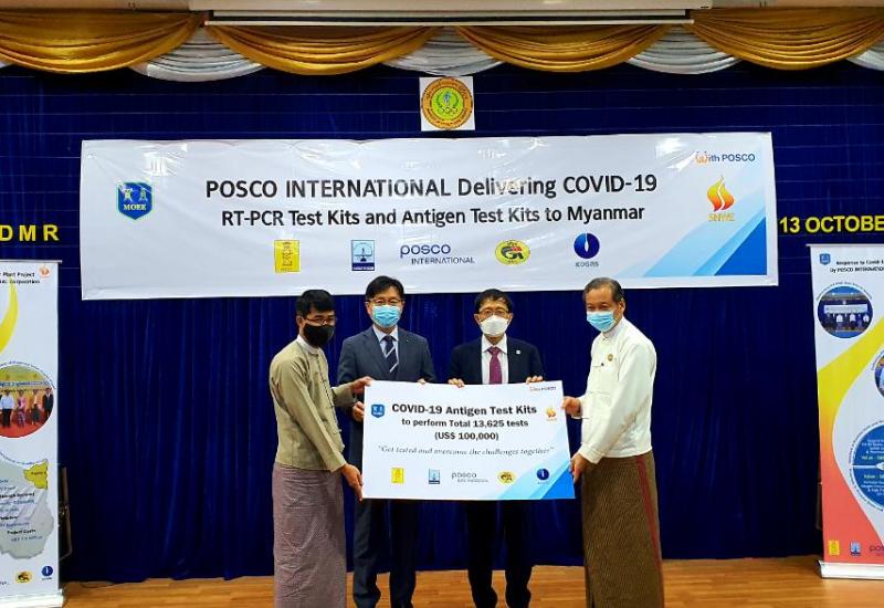 လျှပ်စစ်နှင့်စွမ်းအင်ဝန်ကြီးဌာန၊ မြန်မာ့ရေနံနှင့်သဘာဝဓာတ်ငွေ့လုပ်ငန်း (MOGE) နှင့် အကျိုးတူ ပူးပေါင်းဆောင်ရွက်လျက်ရှိသော POSCO International Corporation မှ ကျန်းမာရေးနှင့် အားကစားဝန်ကြီးဌာနသို့ ကိုရီးယားနိုင်ငံထုတ် RT-PCR Test Kits and Rapid Antigen Test Kits များအား ပေးအပ်လှူဒါန်းပွဲအခမ်းအနားကို ယနေ့တွင် ရန်ကုန်မြို့ရှိ ဆေးသုတေသနဦးစီးဌာန၌ ကျင်းပသည်။