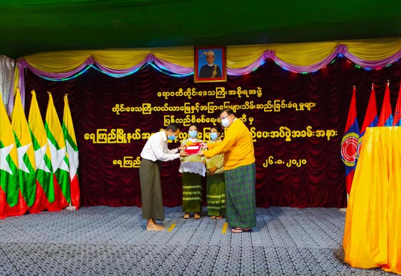 GOVID-19 စီးပွားရေးကုစားမှုအစီအစဉ် CERP ဖြင့် ရှမ်းပြည်နယ်(မြောက်ပိုင်း)အတွင်း Rs-Cs မျိုးသန့်မျိုးစေ့ထုတ် စိုက်ပျိုးမည့် တောင်သူများအား ဒုတိယအရစ် ထောက်ပံငွေပေးအပ်ခြင်းကို ယနေ့ နံနက်(၉)နာရီခွဲက လားရှိုးမြို့ ဟူးမွန်ကျေးရွာ ရှင်းလင်း ဆောင်ခန်းမ၌ ကျင်းပကြောင်း သိရှိရသည်။