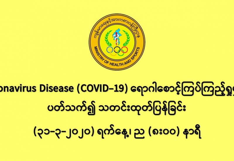 ကျန်းမာရေးနှင့် အားကစားဝန်ကြီးဌာနသည် ကမ္ဘာ့နိုင်ငံများတွင် ကူးစက်ပျံ့နှံ့လျက်ရှိသည့် COVID-19 လတ်တလောအသက်ရှူလမ်းကြောင်းဆိုင်ရာ ရောဂါဖြစ်ပွားမှုဖြစ်စဉ်နှင့် ပတ်သက်၍ ရောဂါစောင့်ကြပ်ကြည့်ရှုခြင်း လုပ်ငန်းများအား အပြည်ပြည်ဆိုင်ရာ ဝင်ပေါက်၊ ထွက်ပေါက်ဂိတ် များတွင်လည်းကောင်း၊ ဆေးရုံအခြေပြုအဖြစ်လည်းကောင်း၊ ပြည်သူလူထု အခြေပြု စောင့်ကြပ်ကြည့်ရှုခြင်း လုပ်ငန်းများဖြင့်လည်းကောင်း၊ ပုဂ္ဂလိကဆေးရုံများနှင့် ပူးပေါင်၍လည်းကောင်း ဆောင်ရွက်လျက်ရှိပါသည်။