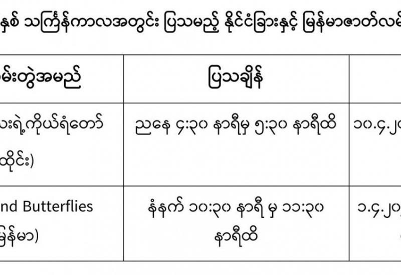 ၂၀၂၀ ပြည့်နှစ်၊ ဧပြီ ၁၀ ရက်မှ ၁၉ ရက်အထိ မြန်မာ့ရိုးရာ မဟာသင်္ကြန်ရုံးပိတ်ရက် ကာလအတွင်း မူလပြသနေသည့် ရုပ်သံဇာတ်လမ်းတွဲများအပြင် မိသားစုနှင့်အတူ အပန်းဖြေအနားယူကြမည့်