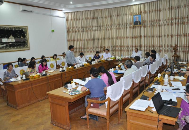 ပညာရေးဝန်ကြီးဌာန၏ တိုင်းရင်းသား ဘာသာစကား ဖွံ့ဖြိုးတိုးတက်ရေး အတွက် ဆောင်ရွက်မှု အခြေအနေများ တွေ့ဆုံရှင်း လင်းဆွေးနွေးပွဲကို မတ် ၅ ရက်က မော်လမြိုင်မြို့ရှိ တိုင်းရင်းသားလူမျိုးများရေးရာဝန်ကြီးဌာန ပြည်နယ်ညွှန်ကြားရေးမှူးရုံး အစည်း အဝေးခန်းမ၌ ကျင်းပသည်။