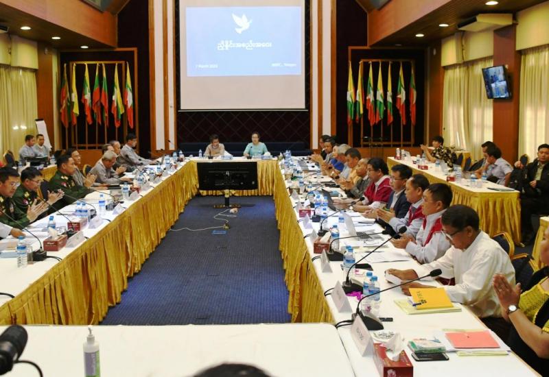 (၈)ကြိမ်မြောက် တစ်နိုင်ငံလုံး ပစ်ခတ်တိုက်ခိုက်မှုရပ်စဲရေး သဘောတူစာချုပ် အကောင် အထည်ဖော်မှုဆိုင်ရာ ညှိနှိုင်းအစည်းအဝေး (JICM) အစည်းအဝေးဆုံးဖြတ် ချက်များ အကောင်အထည်ဖော်ရေးအတွက် အစိုးရကိုယ်စားလှယ်များနှင့် NCA လက်မှတ်ရေးထိုးထား သည့် တိုင်းရင်းသားလက်နက်ကိုင် အဖွဲ့အစည်းကိုယ်စားလှယ်များ (NCA - S EAO)၏ နှစ်ဖက် အလုပ်အဖွဲ့ ညှိနှိုင်းအစည်းအဝေးကို ယနေ့နံနက် ၁၀ နာရီတွင် ရန်ကုန်မြို့ ရွှေလီလမ်းရှိ အမျိုးသားပြန်လည်သင့်မြတ်ရေးနှင့် ငြိမ်းချမ်းရေးဗဟိုဌာန (NRPC)တွင် ဆက်လက် ကျင်းပသည်။