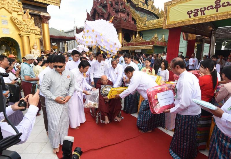 လူမှု၀န်ထမ်း၊ ကယ်ဆယ်ရေးနှင့် ပြန်လည်နေရာချထားရေး၀န်ကြီးဌာန ပြည်ထောင်စု၀န်ကြီး ဒေါက်တာ၀င်းမြတ်အေးသည် ယနေ့နံနက်ပိုင်းတွင် ဖျာပုံမြို့ရှိ ကန်တော်မင်္ဂလာ ဘိုးဘွားရိပ်သာ၌ ဘိုးဘွား(၃၅) ဦးအတွက် အလှူငွေ ကျပ် (၅)သိန်း၊ စောင်များနှင့် အခင်းများ ပေးအပ်လှူဒါန်းသည်။