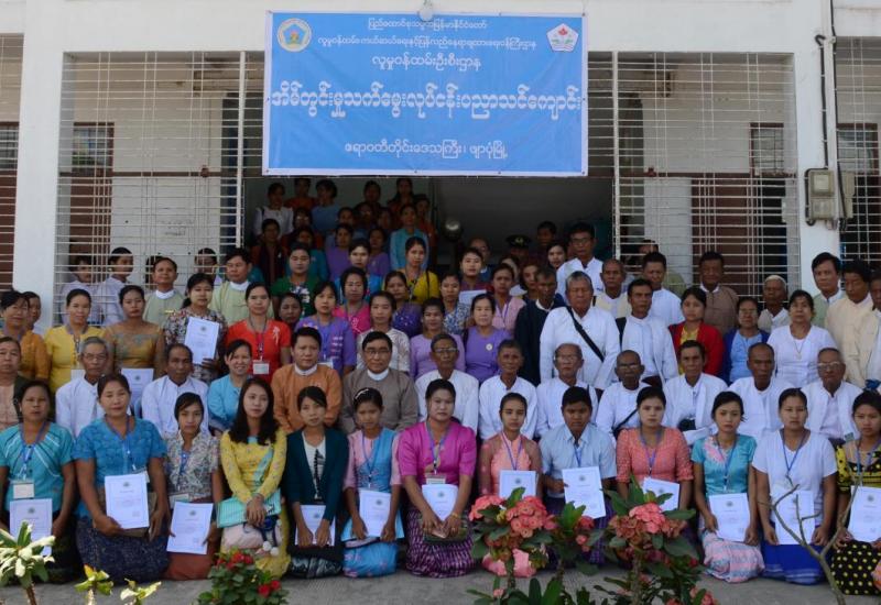 သင်တန်းဆင်းပွဲ အခမ်းအနား တွင် ကော်မရှင်အတွင်းရေးမှူး ဦးစန်းဝင်းက သင်တန်းဆင်းမိန့်ခွန်း ပြောကြားပြီး (ဝဲပုံ) အခြေခံလေ့ကျင့် ရေး သင်တန်းအမှတ်စဉ် (၁/၂၀၂၀) ၌ ပထမရရှိသော ဒေါ်အိရွှေဇင်အောင်၊ ဒုတိယရရှိသော ဒေါ်သိမ့်သီရိဆွေ၊ တတိယရရှိသော ဒေါ်မြတ်ပန်းဖြူ တို့အား ဂုဏ်ပြုမှတ်တမ်းလွှာများ ပေးအပ်သည်။