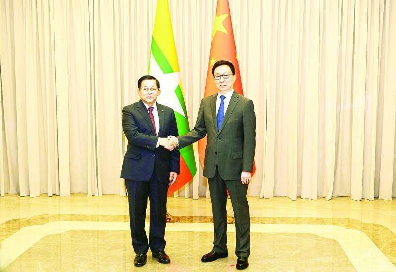 တရုတ်ပြည်သူ့သမ္မတနိုင်ငံ ပေကျင်းမြို့တွင် အလုပ်သဘောခရီးရောက်ရှိနေသည့် ပြည်ထောင်စုသမ္မတမြန်မာနိုင်ငံတော် ယာယီသမ္မတ နိုင်ငံတော်လုံခြုံရေးနှင့် အေးချမ်းသာယာရေးကော်မရှင်ဥက္ကဋ္ဌ ဗိုလ်ချုပ်မှူးကြီး မင်းအောင်လှိုင်သည် ယနေ့ဒေသစံတော်ချိန် နေလယ် ၁၂ နာရီတွင် ကျောက်ယွိထိုင်နိုင်ငံတော်ဧည့်ဂေဟာ၌ တရုတ်ပြည်သူ့သမ္မတနိုင်ငံ၊ ဒုတိယသမ္မတ H.E. Mr. Han Zheng နှင့် တွေ့ဆုံဆွေးနွေးသည်။