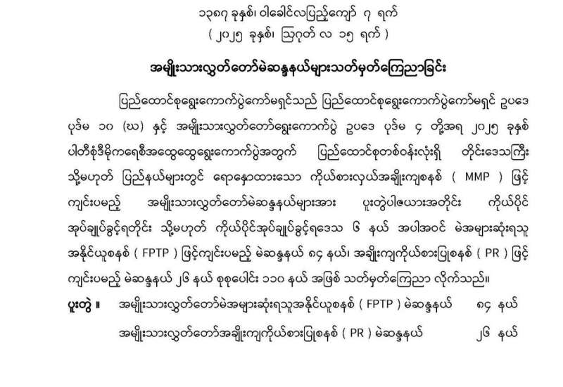 ပြည်သူ့လွှတ်တော်မဲဆန္ဒနယ်များ သတ်မှတ်ကြေညာခြင်း